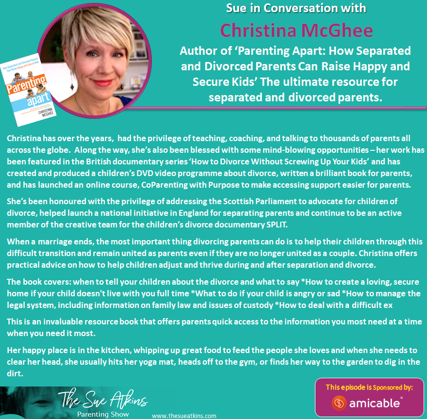Sue and Christina discuss her book ‘Parenting Apart: How Separated and Divorced Parents Can Raise Happy and Secure Kids’ The ultimate resource for separated and divorced parents.
